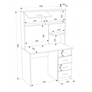 Розміри комп'ютерного столу: ширина - 1000 мм (100 см); глибина - 550 мм (55 см); висота - 1552 мм (155,2 см).