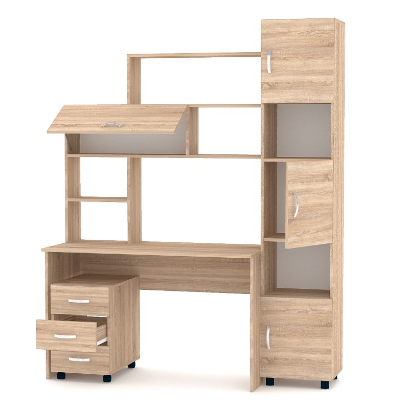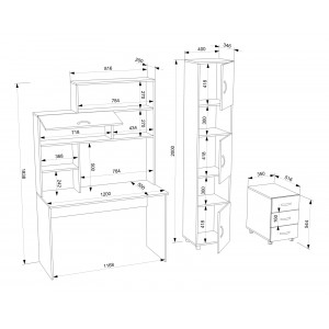 Розміри комп'ютерного столу: ширина - 1200/400 мм (120/40 см); глибина - 550 мм (55 см); висота - 1838/2000 мм (183,8/200 см).