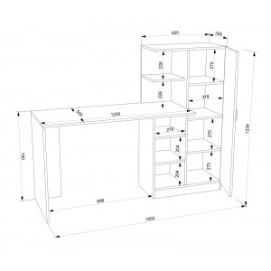 Розміри комп'ютерного столу: ширина - 1550 мм (155 см); глибина - 500 мм (50 см); висота - 1234 мм (123,4 см).