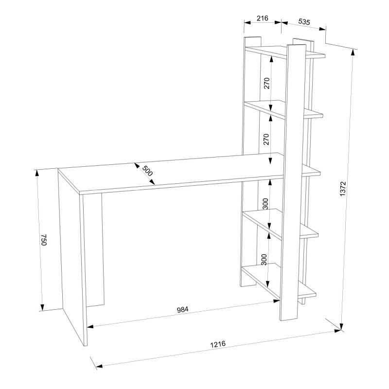 Размеры компьютерного стола: ширина - 1200 мм (120 см); глубина - 600 мм (60 см); высота - 1530 мм (153 см).
