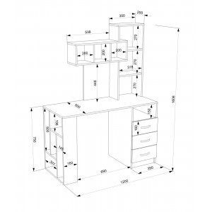 Размеры компьютерного стола: ширина - 1200 мм (120 см); глубина - 500 мм (50 см); высота - 1608 мм (160,8 см).