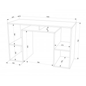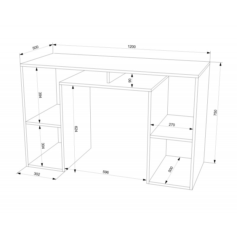 Размеры компьютерного стола: ширина - 1200 мм (120 см); глубина - 500 мм (50 см); высота - 750 мм (75 см).