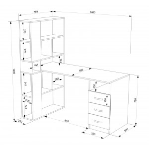 Розміри комп'ютерного столу: ширина - 1400 мм (140 см); глибина - 768 мм (76,8 см); висота - 1482 мм (148,2 см).