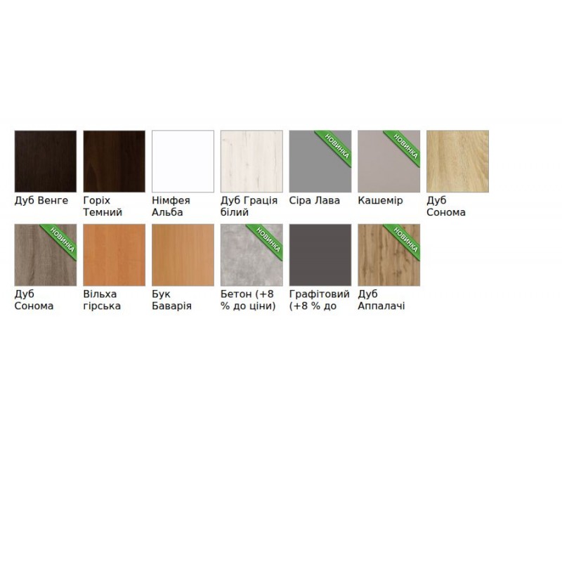 Матеріал - ламінована ДСП "Swiss Krono" 16 мм. Крайка - ПВХ 2 мм, 0,5 мм.