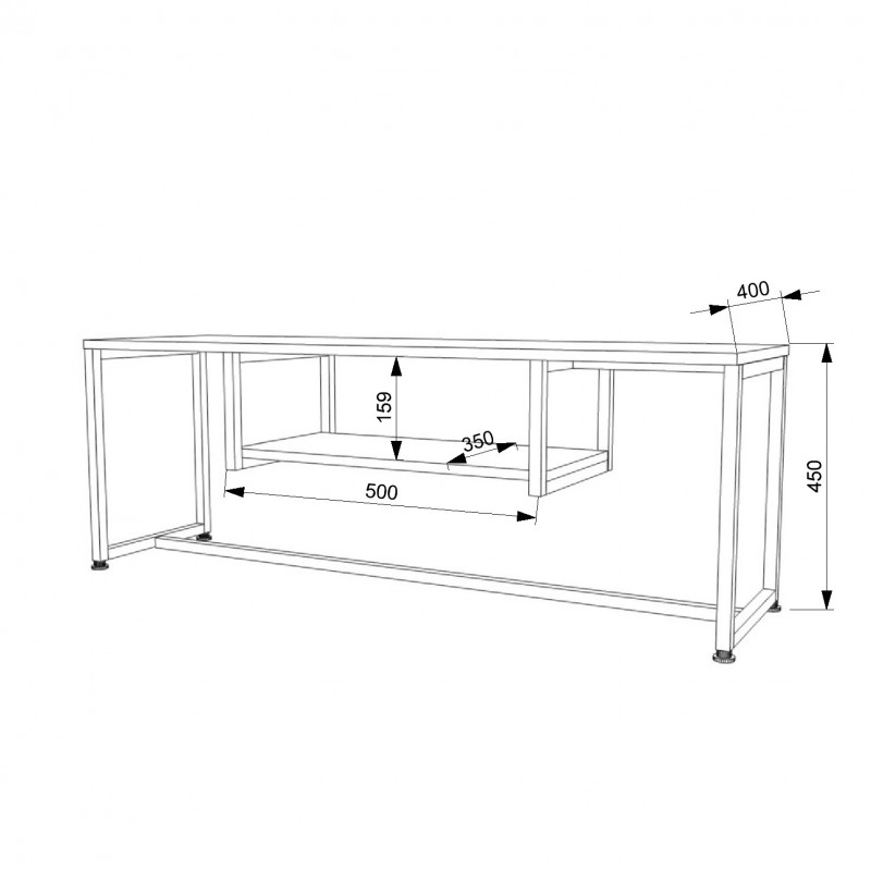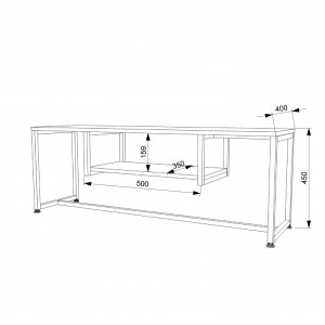 Матеріали: опори - металева профільна труба 25х25х1,5 мм; стільниця - ДСП "SWISS KRONO" 32 мм, полиця - ДСП "SWISS KRONO" 16 мм; крайка - ПВХ 2 мм, ПВХ 0,5 мм.