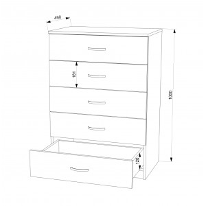 Розміри комода: ширина - 500 мм (50 см); глибина - 450 мм (45 см); висота - 1022 мм (102,2 см).