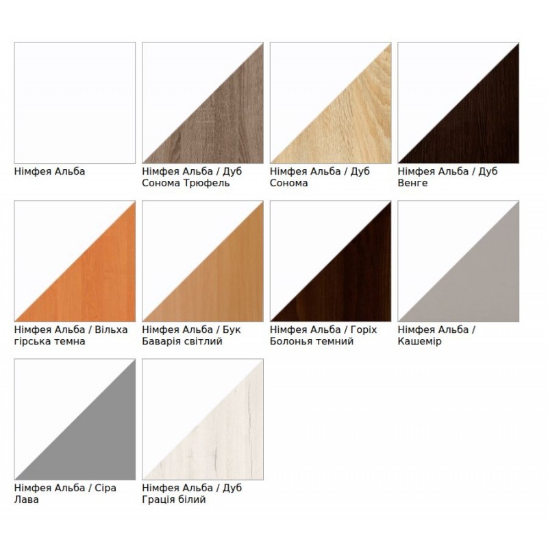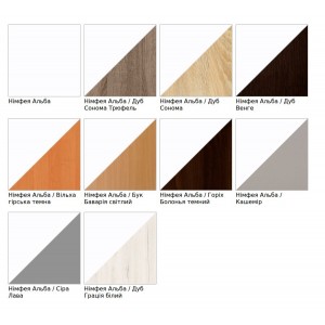 Колір виробу - можна замовити у будь-якому з представлених кольорів ДСП.