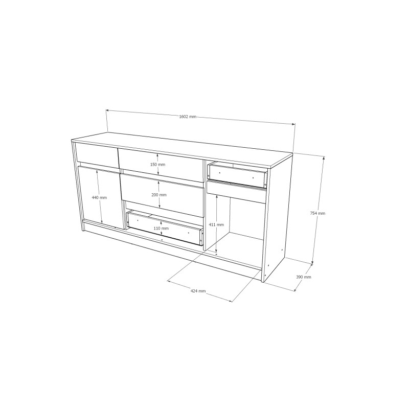Комод 1150 СІТІ, Дуб Сонома, Графіт Комод 1150 СІТІ, Дуб Сонома, Графіт
