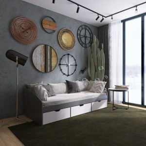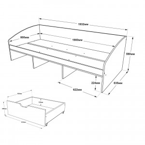 Конструкція - включає в себе додаткові елементи - шухляди для зберігання речей, що робить її зручною для невеликих приміщень.