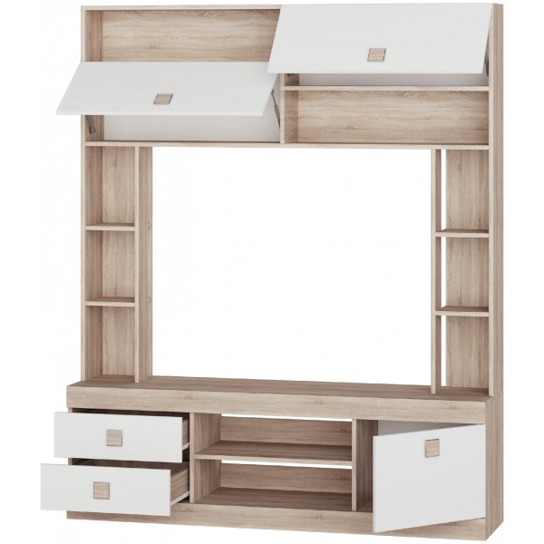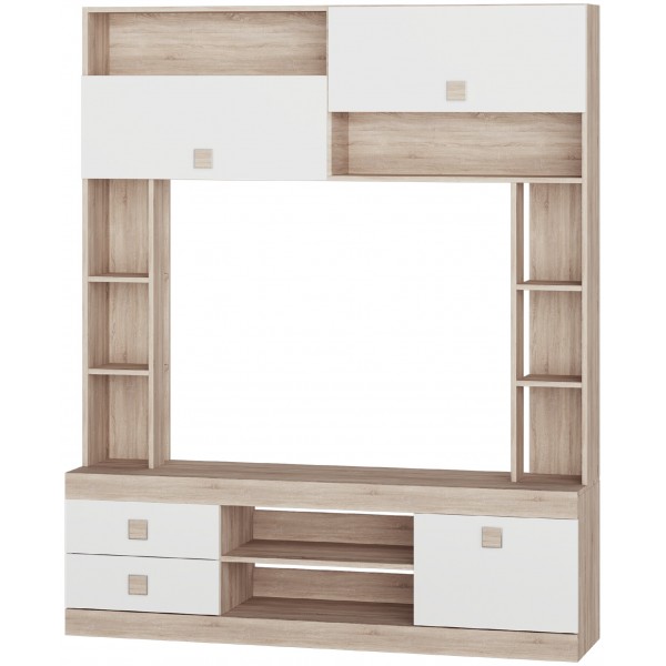 Стенка Соната не только украшает интерьер, но и обладает высокой функциональностью. Благодаря чистым линиям и красивому дизайну, она создает в помещении атмосферу уюта и комфорта. Эта модель имеет нишу для ТВ, множество открытых полок для книг, декора, техники.