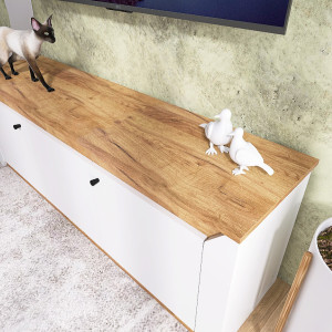 Серед переваг тумби ТВ 1500 Нордик варто відзначити її стильний дизайн, функціональність, міцність та зручність використання. Вона забезпечує зручне розміщення телевізора, аудіо-відео техніки та інших предметів. Завдяки продуманій конструкції всі необхідні речі завжди будуть під рукою.